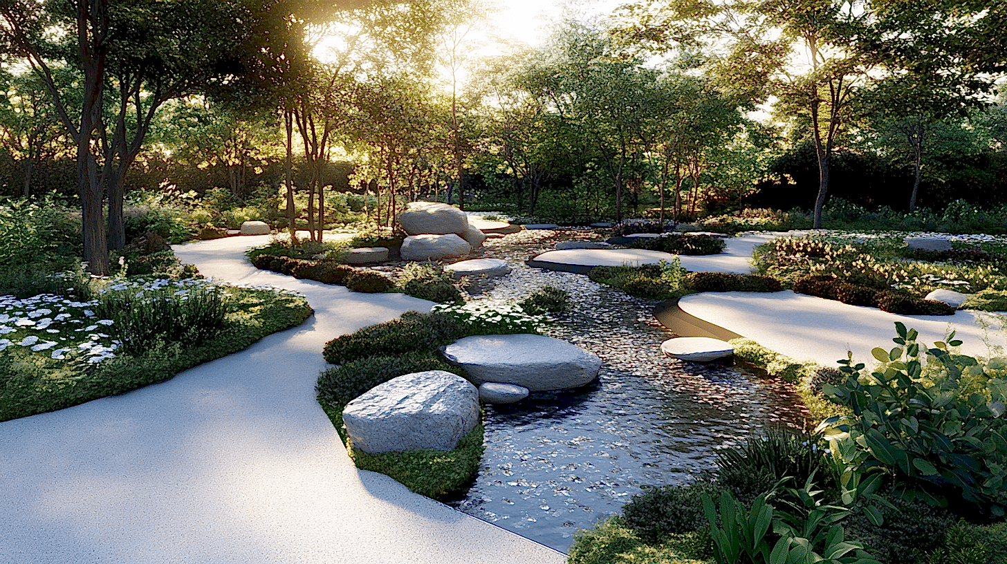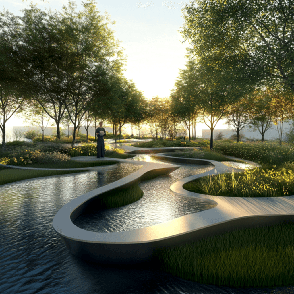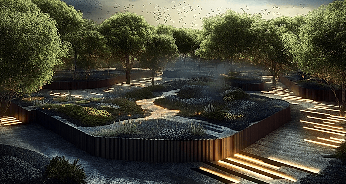 – **Sanatsal Bahçe, Nilsen Landscape Design**: Sanattan, müzikten ve danstan ilham alan bu bahçe tasarımı, çok duyulu bir deneyim yaratan unsurları bir araya getiriyor. Sesin bir tasarım öğesi olarak kullanılması, insanlar ve çevreleri arasındaki duygusal ve duyusal bağlantıyı geliştirerek huzur ve esenlik duygusunu teşvik ediyor.